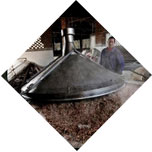 将拌好的大楂酒醅进行装甑,要求:“清”薄“”匀“。蒸馏过程看花摘酒.....